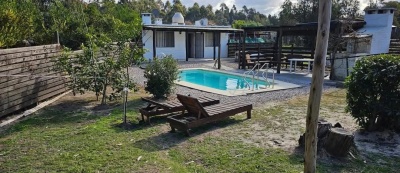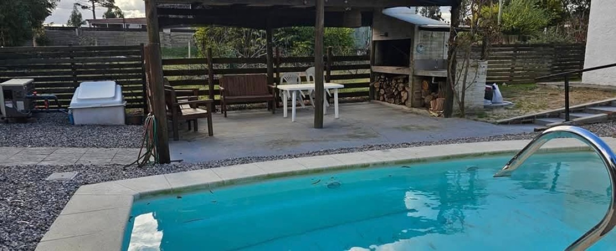 Casa 2. 1 dormitorio con aire acond. Estufa a leña, baño completo. Cochera. Galpón, piscina climatizada con bomba de calor. Precio x todo 229000 dólares.