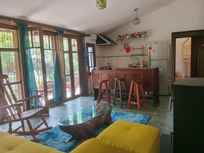 Mágica casa en el Pinar. Hermosa casa con un inmenso jardín super cuidado, casa amueblada. Cuenta con 2 dormitorios más un entrepiso que se puede usar para escritorio o para otro cuarto. 1 baño, un amplio living comedor con cocina integrada y estufa a leña. Un parrillero, hamaca paraguaya para disfrutar, hay un tobogán para los niños. Admite mascotas. La casa está pronta para alquilar desde el 1ero. de marzo.