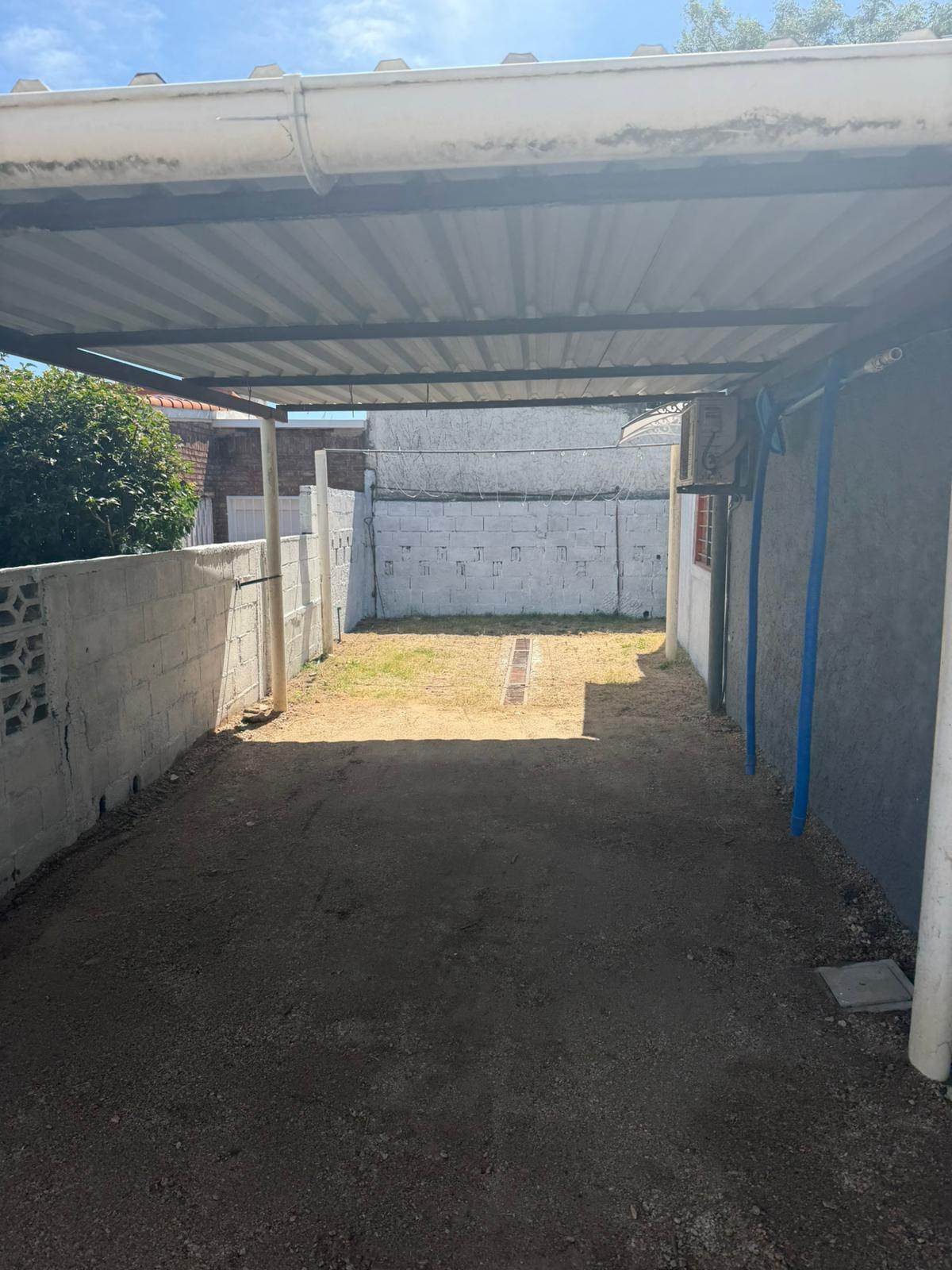 Fondo con piscina, cerco y aire acondicionado.