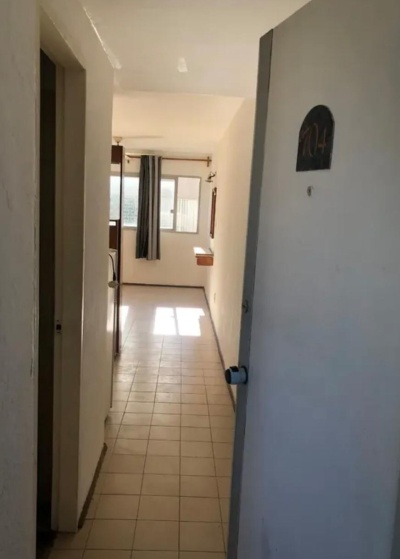 El espacio cuenta con una cocina integrada y un baño, proporcionando funcionalidad en un ambiente compacto.